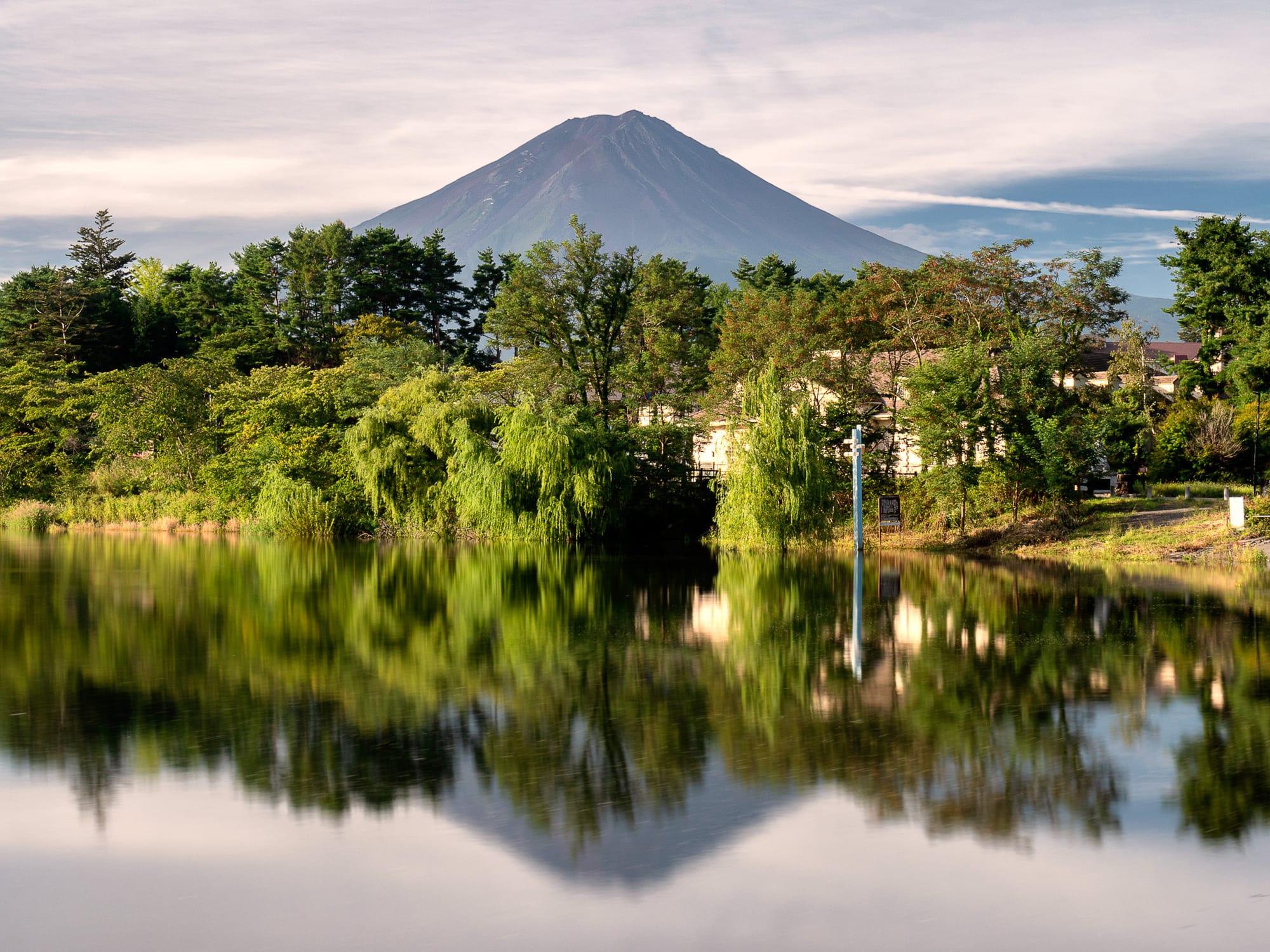 On the third day I got up at sunrise and walked down to the Lakeside from the hotel, hoping to see Fuji-san, but expecting to shoot the lake. I was greeted with this view, and worked hard to find a scene that had a beautiful reflection.